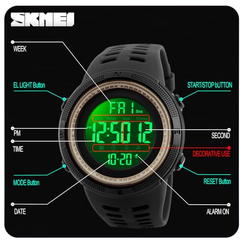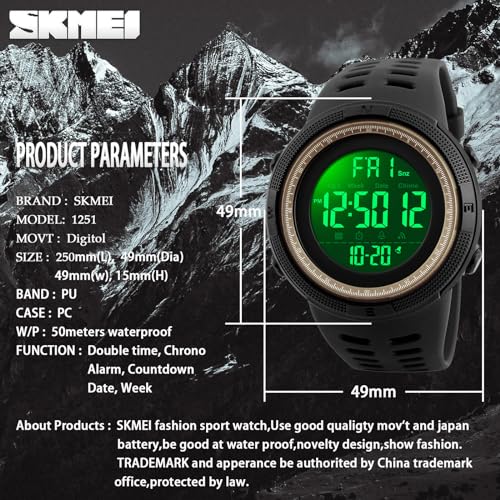SKMEI - ساعة رياضية ديجيتال متعددة الاغراض مقاومة للماء حتى عمق 50 متر واضاءة LED وتوقيت 24 مع خاصية ضبط التوقيت والعد التنازلي وضبط التاريخ والمنبه تلقائيا للرجال من سكماي أسود - بني حزام