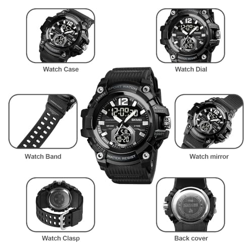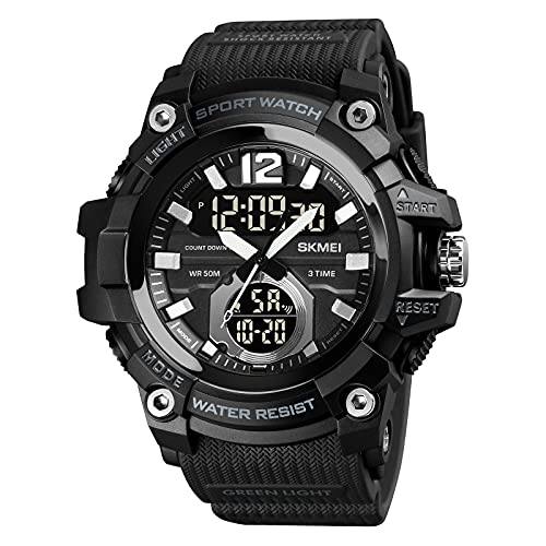 SKMEI - SKMEI ساعة رياضية رجالية رقمية، شاشة LED كبيرة، متعددة المناطق الزمنية، مقاومة للماء، كوارتز تناظري،