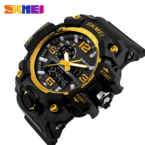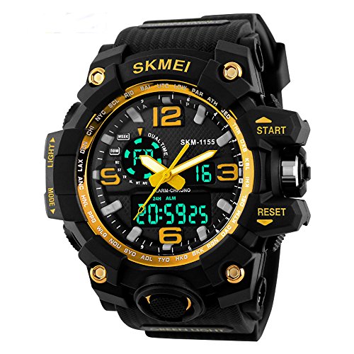 SKMEI - SKMEI ساعة رياضية رقمية للرجال، شاشة LED كبيرة، متعددة المناطق الزمنية، مقاومة للماء، مينا أسود، كوارتز تناظري