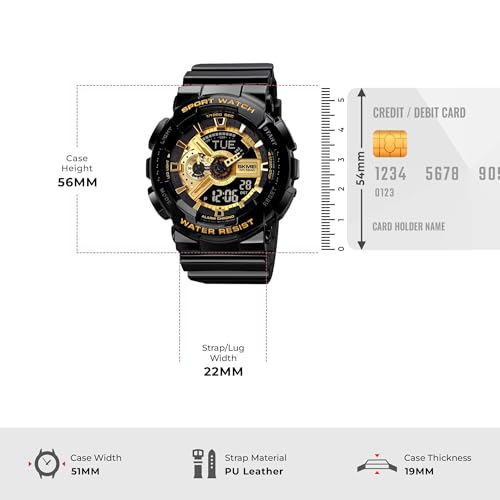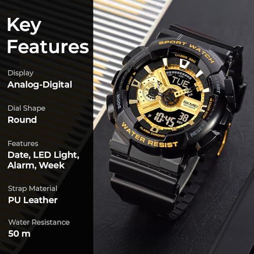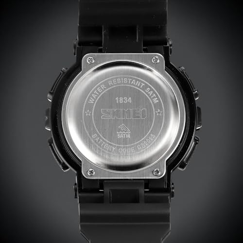 SKMEI - ساعة من سكماي للرجال، بمينا سوداء وسوار أسود، عرض تناظري ورقمي