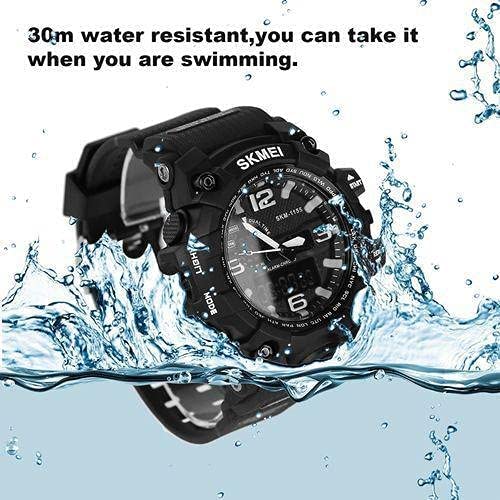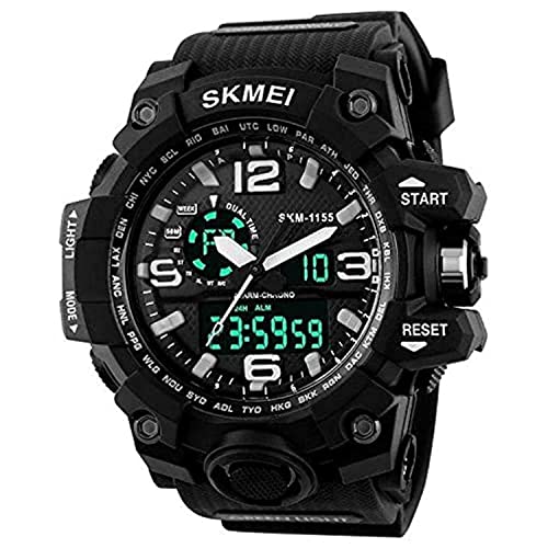 SKMEI - ساعة يد ديجيتال مقاومة للماء على عمق 50 متر من سكماي بتقويم اضاءة LED، موديل 2724855116416، بسوار أسود، للجنسين