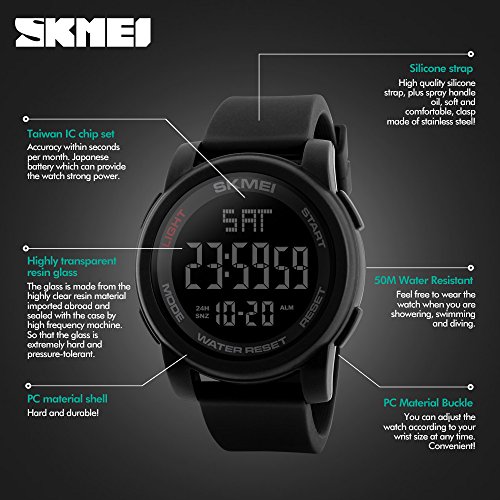 SKMEI - ساعة ديجيتال ببوصلة للرجال بتصميم رياضي من سكماي تشمل عداد الخطوات ومقياس الارتفاع ومستشعر مقياس الضغط الجوي درجة الحرارة عسكرية مقاومة للماء والنساء وسوار - متعدد الألوان .