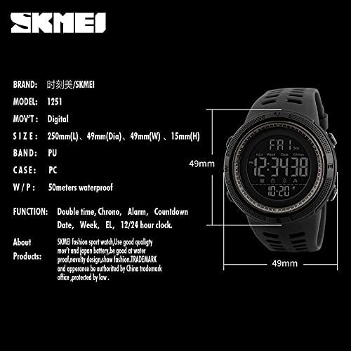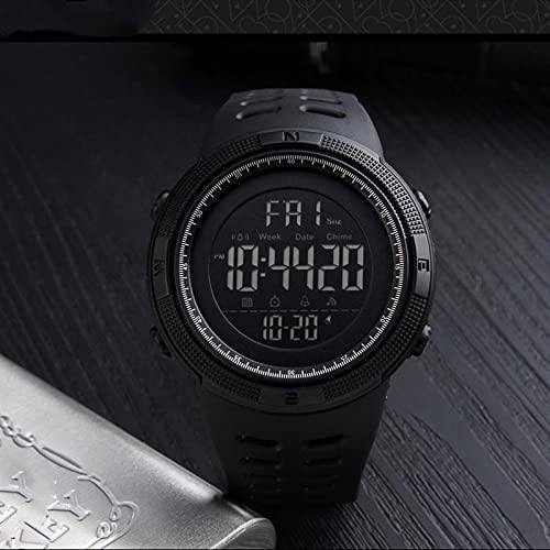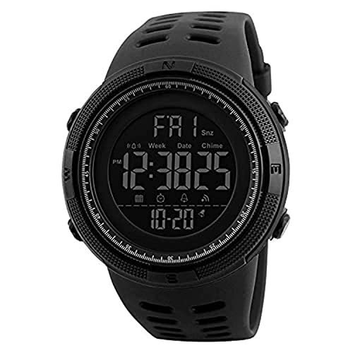 SKMEI - ساعة رياضية رقمية بسوار مطاطي للرجال من سكماي - طراز GD01981 بمينا أسود