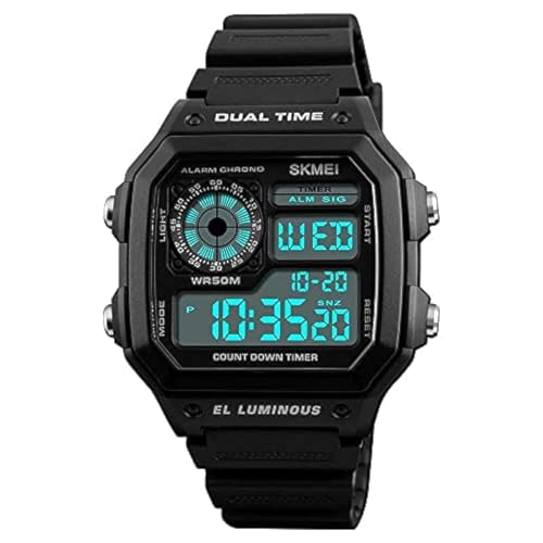 SKMEI - سكمي ساعة رياضية للرجال من هيرين اوهرين رقمية فاخرة باضاءة LED - اسود