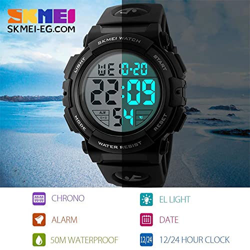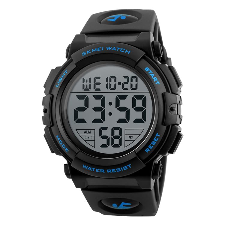 SKMEI - ساعات متعددة الوظائف بشاشة باضاءة خلفية ليد بخاصية منبه وساعة توقيت مقاومة للماء من سكماي ديجيتال بمينا أخضر بسوار أزرق للبالغين الجنسين