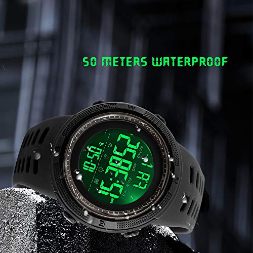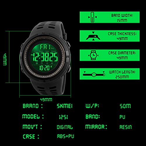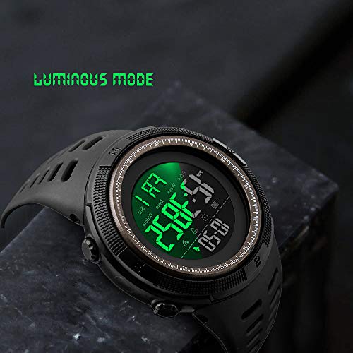 SKMEI - ساعة رياضية رقمية للرجال مقاومة للماء وساعة ايقاف عسكرية بخاصية تنبيه التاريخ التلقائي, بني, Large, عصري
