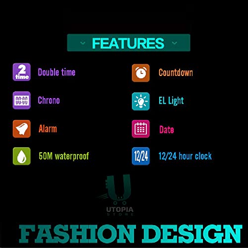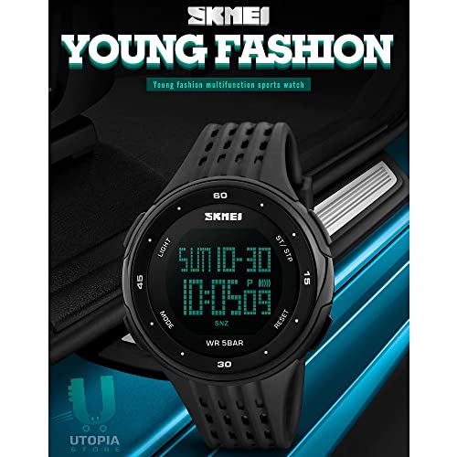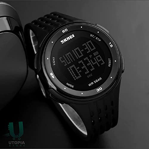 SKMEI - ساعة يد رياضيه من SKMEI مقاومة للمياه مع منبه وساعة ايقاف مناسبة للرجال و للنساء متعددة الوظائف شاشة LED اضائه خلفية بمينا أسود بسوار رمادي