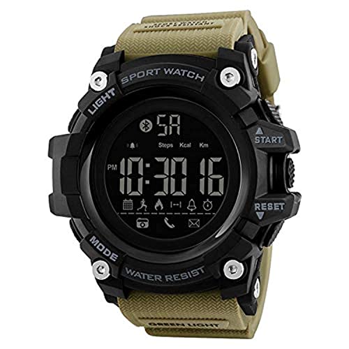 SKMEI - ساعة مقاومة للماء مع عداد الخطى والسعرات الحرارية ومراقب النوم وساعة تذكير المكالمات من سكماي (كاكي، 50 متر)، أخضر