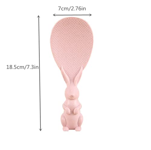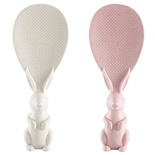 SKQIT - معلقة ارز بتصميم ارنب لطيف ومبتكر من سكويت، مغرفة للارز غير لاصقة، بلون بيج وبينك، مقاس واحد، قطعتان