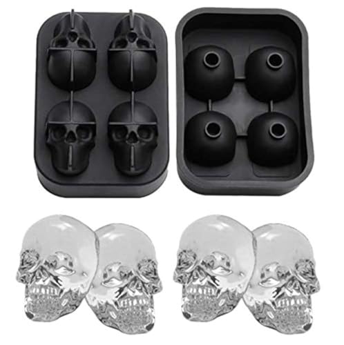 Other - قالب ثلج على شكل جمجمة للهالوين، جمجمة ثلج، شبكة ثلج ثلاثية الأبعاد إبداعية مع 4 هياكل عظمية