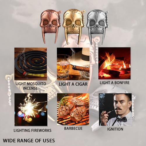 HSSFAF - ولاعة بتصميم على شكل جمجمة رائعة مع لهب قابل للتعديل، ولاعة بوتان مقاومة للرياح وقابلة لإعادة التعبئة، تصميم جمجمة معدنية، هدية للرجال (بدون غاز) (لون فضي)
