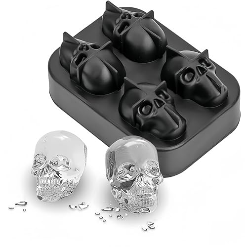 Acptxvh - قوالب ثلج سيليكون على شكل جمجمة، مكعبات ثلج قابلة لاعادة الاستخدام، قوالب سيليكون ثلاثية الابعاد، قوالب جمجمة، للحلوى والويسكي والكوكتيل والشاي المثلج والمشروبات المثلجة