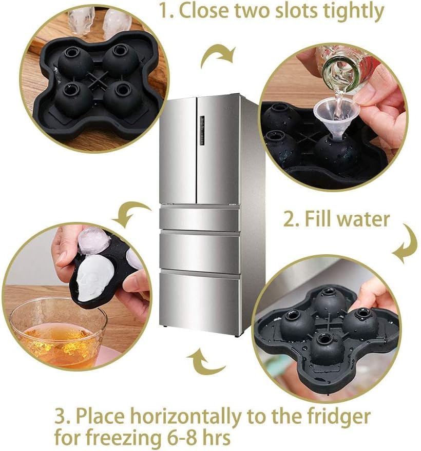- سهلة الاستخدام: ببساطة اسكب مكوناتك المفضلة في الإناء واحتفظ بها بإحكام حتى تكتمل التكوين. يمكن إزالة مكعبات الثلج على شكل جمجمة بسهولة عن طريق الضغط على الجزء السفلي من الأداة. مادة مرنة تجعل من السهل تنظيفها وتخزينها. اشطفيه بالماء قبل الاستخدام وبعد الاستخدام، اغسله وخزنه في مكان نظيف وجاف بعيدًا عن أشعة الشمس المباشرة.