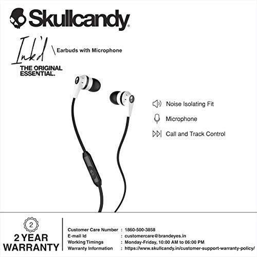 Skullcandy - سماعات أذن انكد 2.0 مع ميكروفون مدمج من سكال كاندي، ابيض وذهبي، سلكي