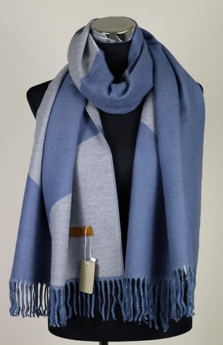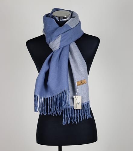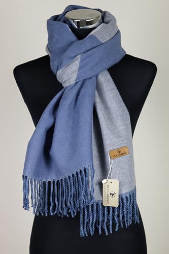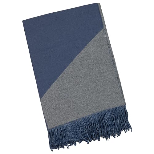 SKY Cashmere - وشاح لف للنساء بتصميم مخطط بلونين سادة مقاس 27 انش × 78 انش