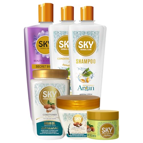 SKY HERBAL CARE - مجموعة العناية الكاملة بالشعر بزيت الأرجان من سكاي (6 قطع)