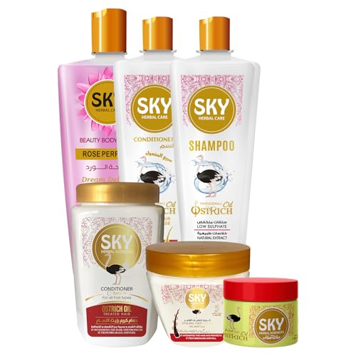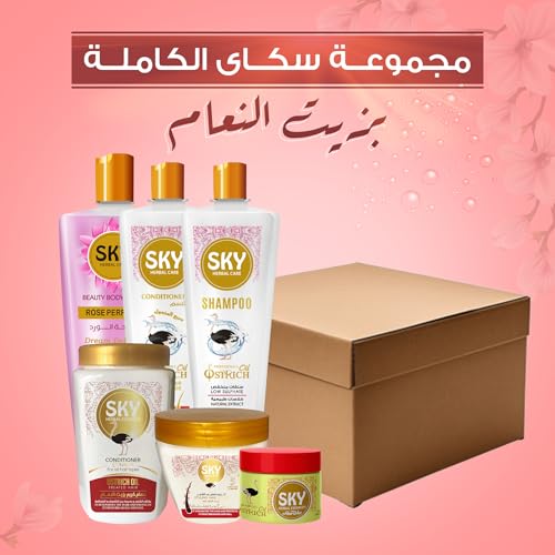 SKY HERBAL CARE - مجموعة العناية الكاملة بالشعر بزيت النعام من سكاي (6 قطع)