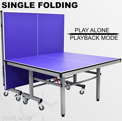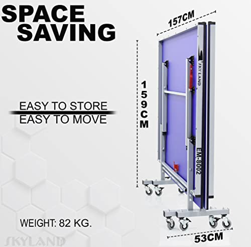 SKY LAND - سكاي لاند طاولة تنس رياضية، طاولة تنس طاولة فردية قابلة للطي، طاولة تي تي تي متحركة، لون ازرق، موديل Em-8002