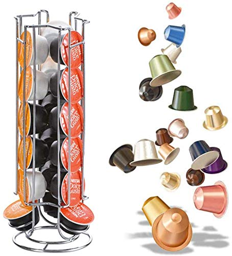 - دوران 360 درجة - قاعدة قابلة للدوران 360 درجة لسهولة اختيار الكبسولة، حامل كبسولات دوار لما يصل إلى 24/32 لكبسولات دولتشي غوستو