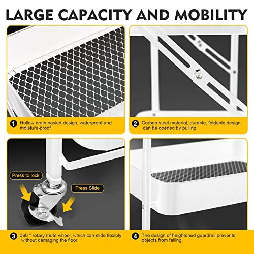 SKY-TOUCH - عربة تنظيم بعجلات معدنية قابلة للطي من 3 طبقات، 46 × 30 × 76 سم من سكاي-تاتش، عربة تنظيم متعددة الاغراض مع عجلات للمطبخ وغرفة النوم والحمام والمكتب وغرفة الغسيل والجراج، لون ابيض