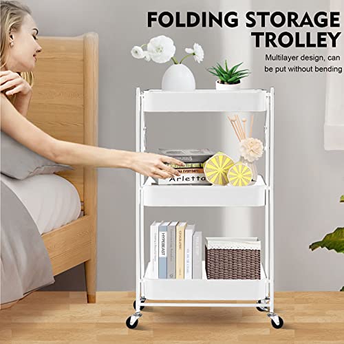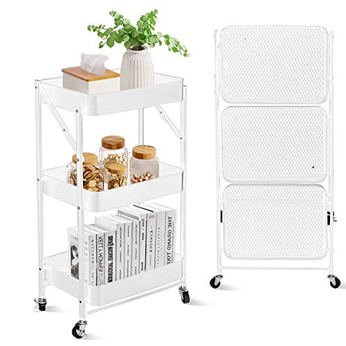 SKY-TOUCH - منظم عربة معدنية بعجلات قابلة للطي من 3 طبقات، منظم متعدد الأغراض مع عجلات للمطبخ وغرفة النوم والحمام والمكتب وغرفة الغسيل والجراج من سكاي-تاتش، أبيض، 46 × 30 × 76 سم