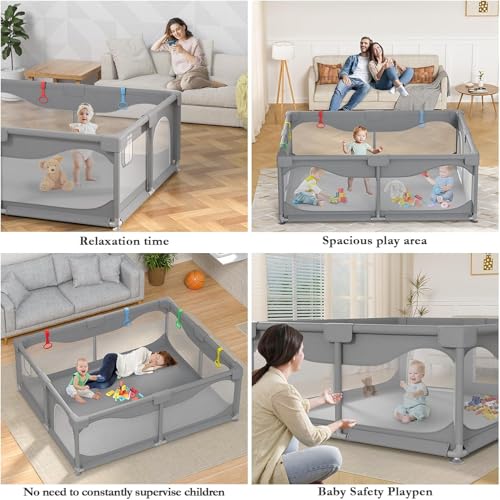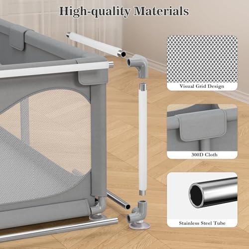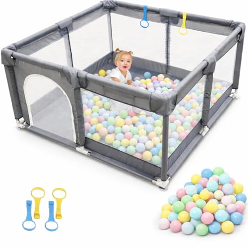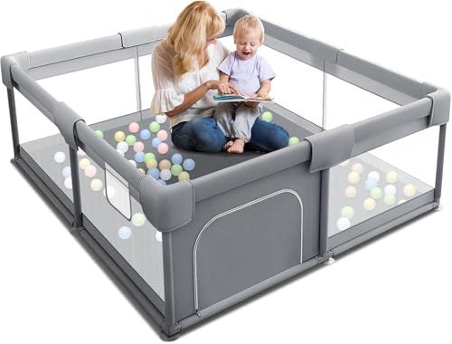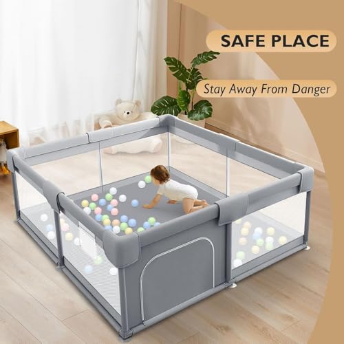 SKY-TOUCH - ساحة لعب كبيرة جدًا للأطفال البيبي، مركز لعب آمن للأطفال مع شبكة مزودة بمسامات للتهوية وباب بسوستة يوفر وقت راحة للأمهات من سكاي-تاتش، 1.2×1.2 م