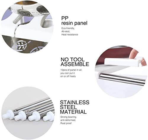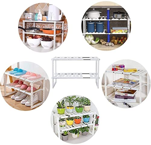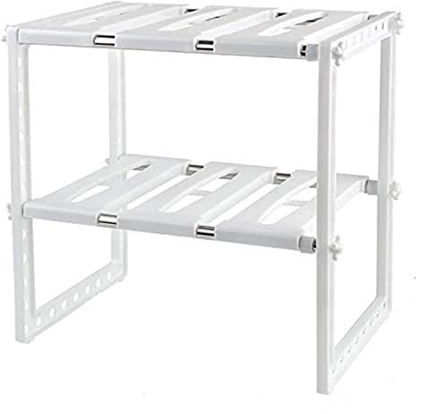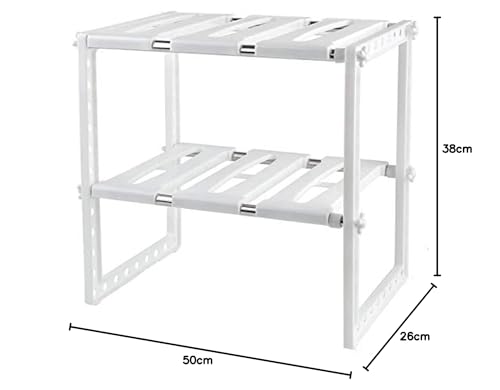 SKY-TOUCH - رف مطبخ قابل للتعديل مكون من مستويين لترتيب مساحة الادوات، ستانلس ستيل، أبيض
