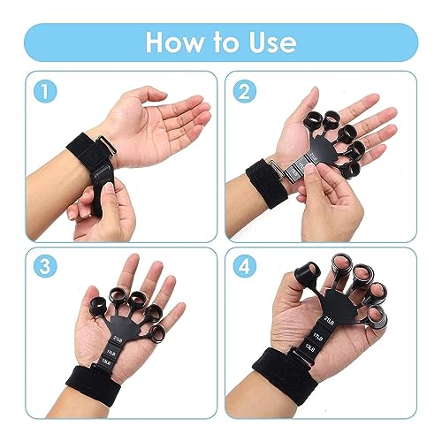 SKY-TOUCH - مقوي الأصابع لتدريب وتقوية قبضة اليد بتصميم 6 مستويات لمقاومة الأصابع لتمديد مرونة الأصابع للموسيقيين ولاعبي رياضة تسلق الصخور من سكاي-تاتش، قطعة واحدة / قطعتين