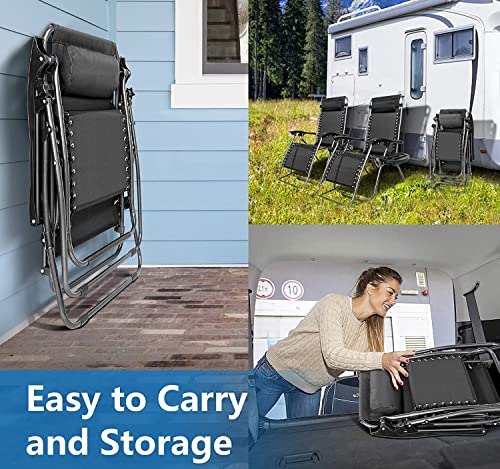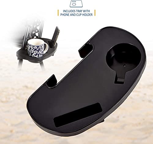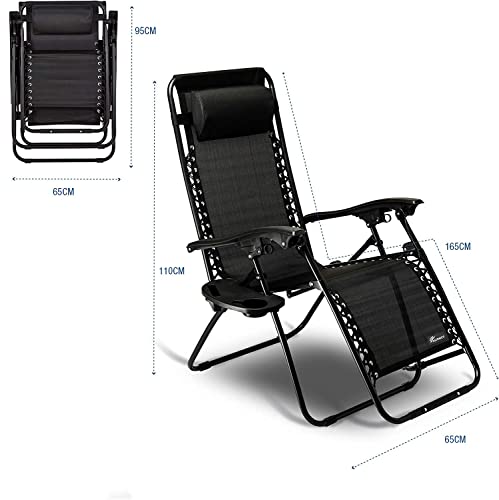 SKY-TOUCH - سكاي-تاتش كرسي استرخاء خارجي قابل للطي، كرسي شاطئ قابل للتعديل بدون جاذبية وكرسي حديقة مع وسائد وحوامل اكواب للفناء الخلفي والشاطئ، اسود، سبيكة صلب