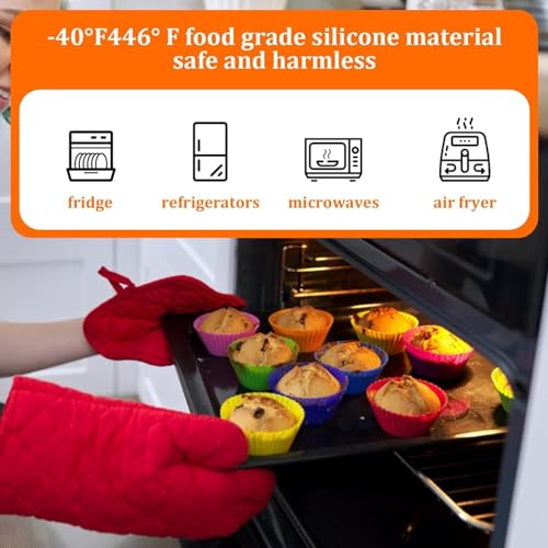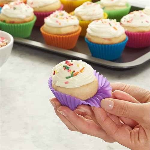 SKY-TOUCH - قوالب بطانات كب كيك سيليكون من 12 قطعة، أكواب خبز قابلة لإعادة الاستخدام غير لاصقة للكب كيك والمافن والشوكولاتة والكب كيك وقوالب الخبز من سكاي-تاتش، متعددة الألوان