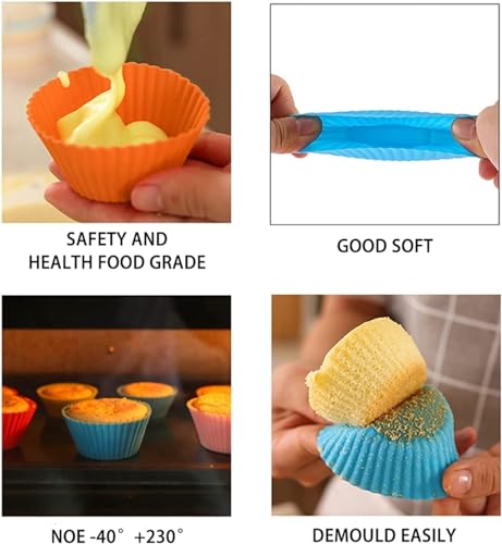 - قوالب كب كيك من السيليكون: مصنوعة من السيليكون الآمن غذائيًا، آمنة للاستخدام في الفريزر وغسالة الأطباق والفرن والميكروويف. خالية من البيسفينول أ وتلبي معايير إدارة الغذاء والدواء الأمريكية، بدون رائحة، للاستخدام الآمن.