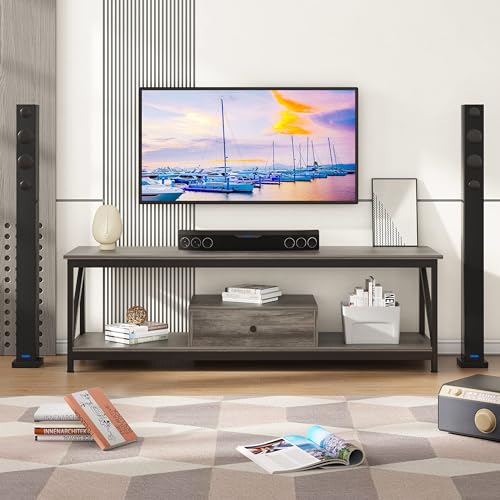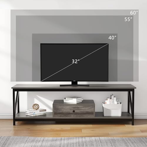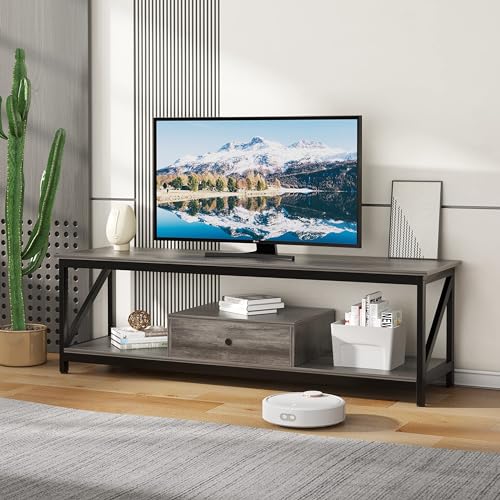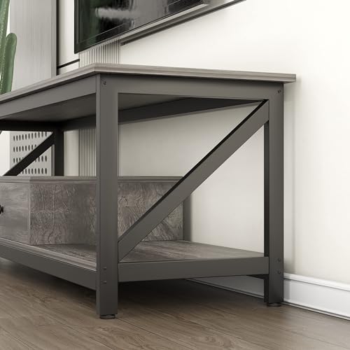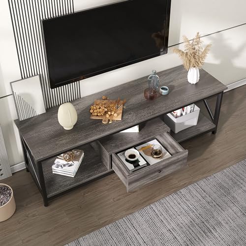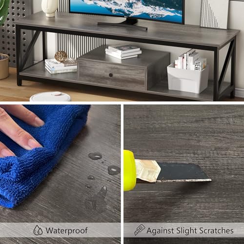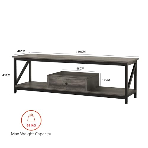 SKY-TOUCH - طاولة تلفزيون من سكاي-تاتش، مصنوعة من المعدن باللون الرمادي، متعددة الوظائف مع درج تخزين واسع وتجميع سهل، مقاس 140 × 40 × 43 سم