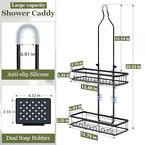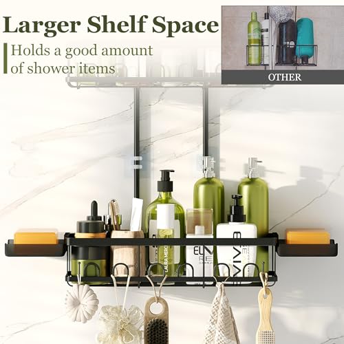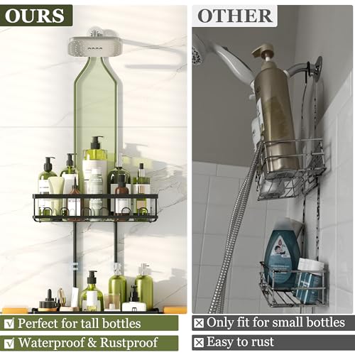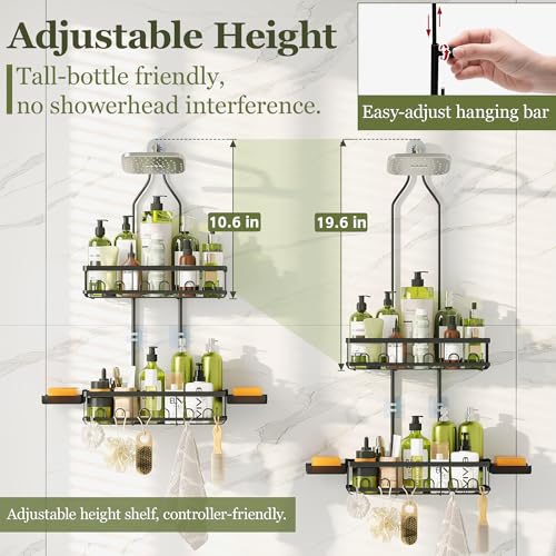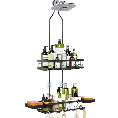 Skyapex - حامل دش معلق من سكايبكس: ارتفاع قابل للتعديل لا يحجب رأس الدش - منظم أسود فوق - رفوف مقاومة للصدأ مع خطاطيف 2 صابون