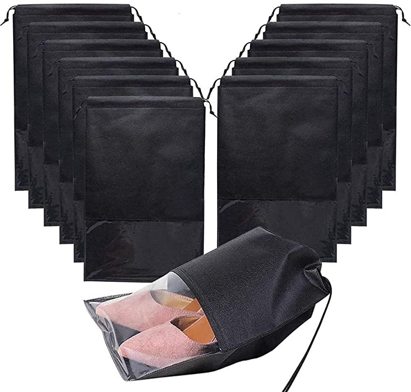 SKYEARMAN - اكياس تخزين الاحذية غير منسوجة برباط ونافذة شفافة من سكيارمان - 12 كيس, أسود, one size,