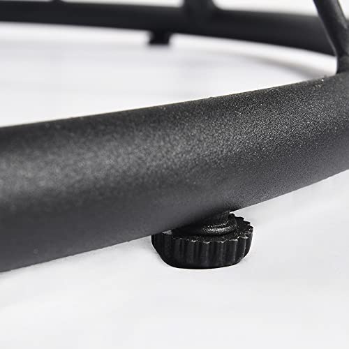 - هيكل صلب متين: مصنوع من إطار قوي من الصلب ومطلي بطبقة من مسحوق بلون أسود لضمان مقاومة الصدأ والمطر والرياح، ما يساعد على إطالة عمر الكرسي.