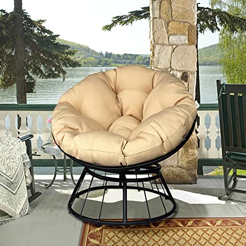 Skypatio - كرسي باباسان بتصميم دائري مريح مع مخدة، كرسي دوار 360° لغرفة المعيشة وغرفة النوم والبلكونة من سكاي باتيو، كاكي
