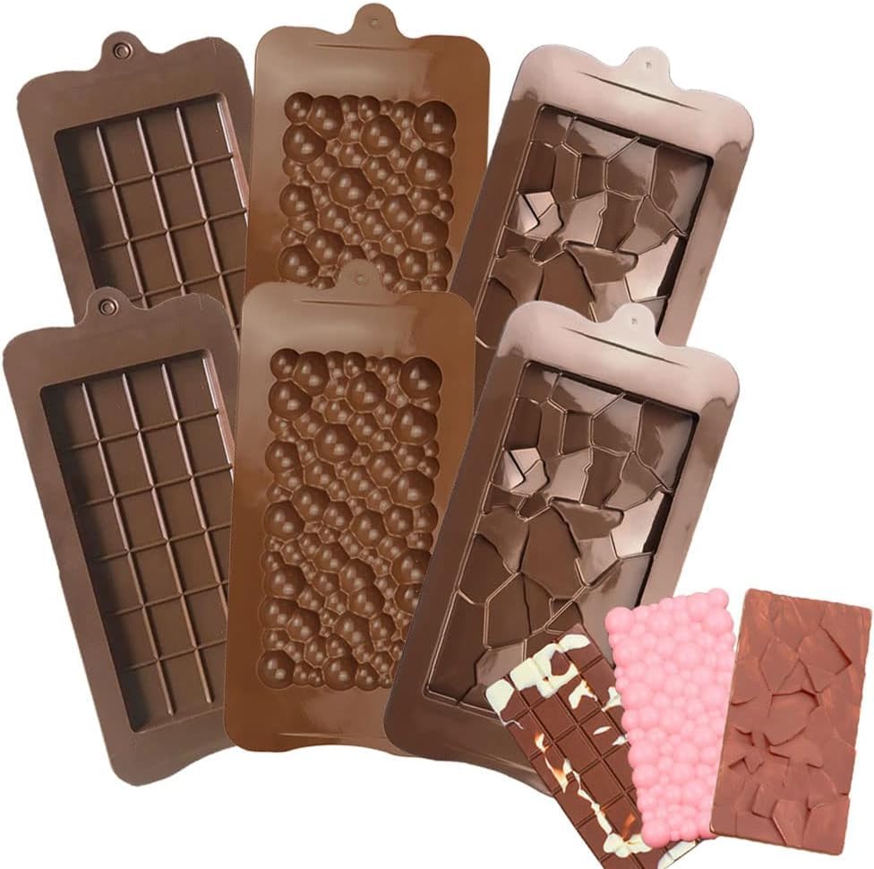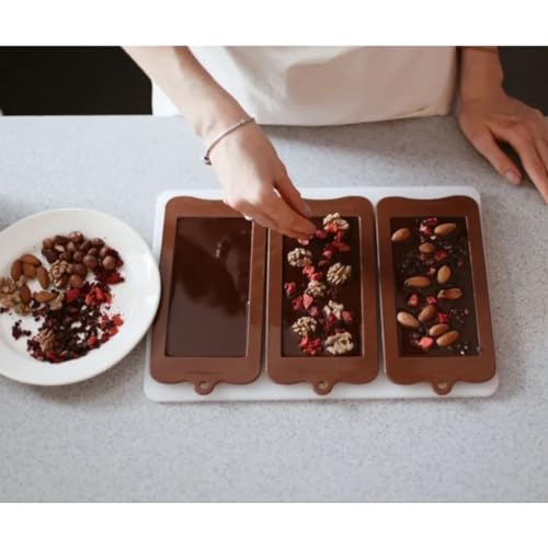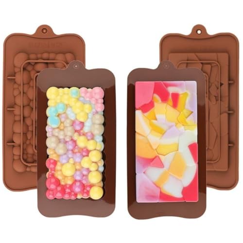 Skytail - قوالب شكولاتة سيليكون آمن غذائيا ومقاومة للالتصاق لألواح البروتين والطاقة لخبز الوجبات الخفيفة وكيك البراوني ولوح الشوكولاتة وحلوى الجيلي والكراميل والجاناش وحلويات الحفلات للأطفال من سكيتيل، 3 قطع