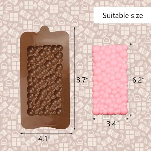 - محتويات العبوة: قطعة واحدة من قالب سيليكون الشوكولاتة على شكل فقاعات، قطعة واحدة من قالب سيليكون الشوكولاتة المستطيل، قطعة واحدة من قالب سيليكون الشوكولاتة على شكل مكسور؛ في الإجمالي ستحصل على 3 قطع من قوالب السيليكون للشوكولاتة.