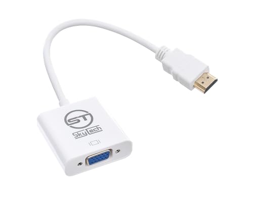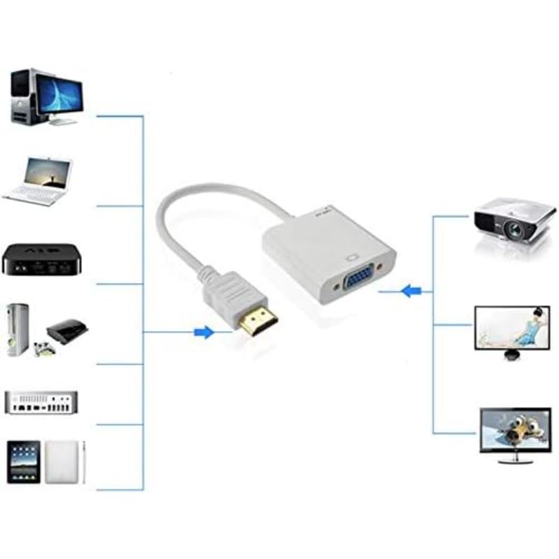Generic - محول نحاسي بمنفذ HDTV إلى VGA/AV مع كابل تشغيل عبر منفذ AUX للتوصيل من سكاي تيك - لون أبيض