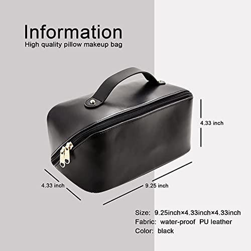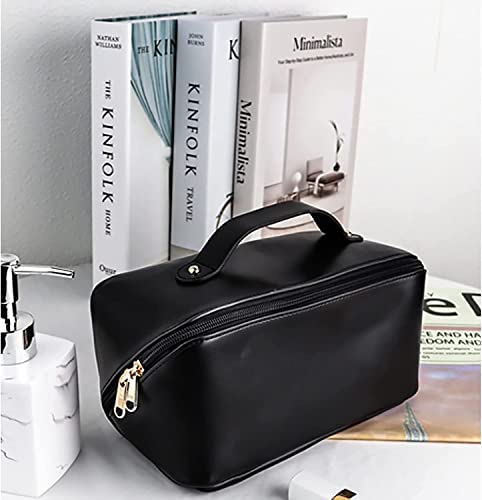 SKYTONE - سكاي تون شنطة سفر لمستحضرات التجميل بسعة كبيرة محمولة من الجلد تخزين المكياج مع مقبض ومقسم منظم مستحضرات والمكياج بفتحة واسعة اسود جلد صناعي