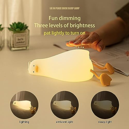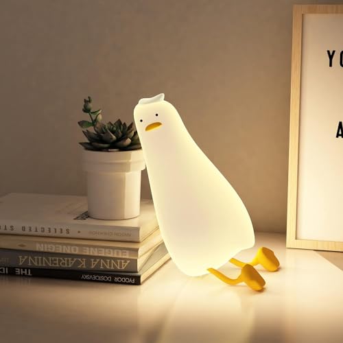 SKYTONE - مصباح ليلي على شكل بطة نائمة، مصباح ليد على شكل بطة إسفنجية، بطة مضيئة لطيفة، مصباح ليلي من السيليكون قابل للتعتيم، هدايا للأطفال الصغار والبنات المراهقات في عيد الحب من سكاي تون (بطة نائمة)