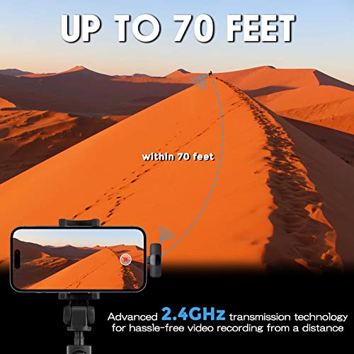- ✅استقبال بدون عوائق في نطاق 70 قدم -- يحتوي الميكروفون اللاسلكي لتسجيل فيديو ايفون على هوائي محسن مدمج وتقنية نقل متقدمة 2.4 جيجاهرتز، وتأثير الراديو عن بعد مشابه لمعدات الراديو الاحترافية، ويمكن للميكروفون الخارجي لتسجيل فيديو ايفون تحقيق جودة صوت عالية من مسافة بعيدة.