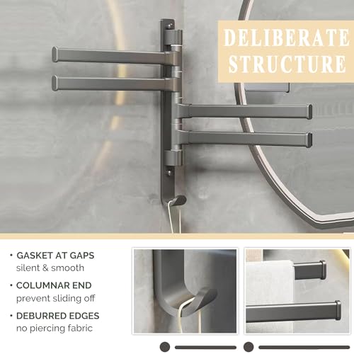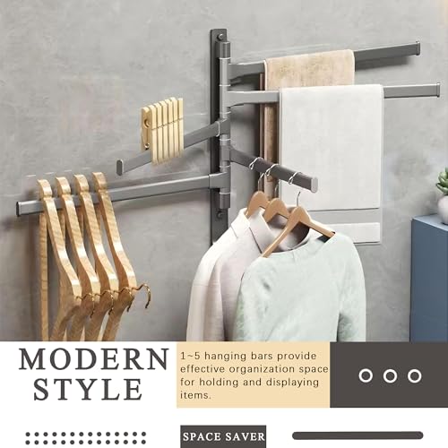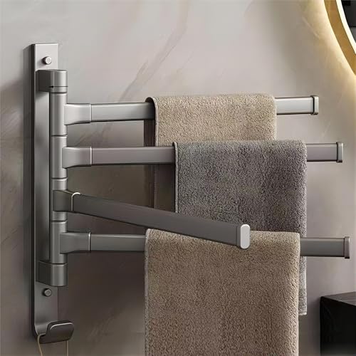 Sleclean - سليكلين حامل مناشف دوار بـ4 اذرع للتعليق على الحائط، حامل مناشف حمام قابل للطي ومقاوم للصدا للحمام والمطبخ، رمادي