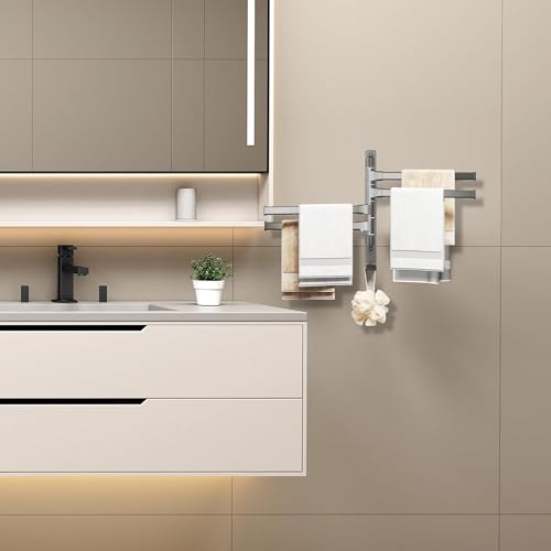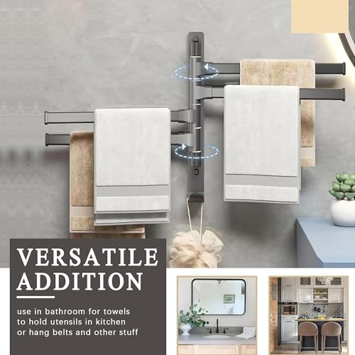 - مساعد يومي متعدد الاستخدامات: رف مناشف الحمام الدوار ذو الأربعة أذرع هو مساعد جيد للتنظيم، مما يجعل حياتك أكثر تنظيمًا وراحة. مناسبة لتعليق مناشف الحمام وأدوات المطبخ والملابس والحقائب في غرفة النوم وأي شيء تريده