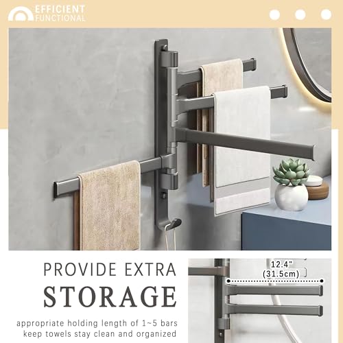 - موفر فعال للمساحة: يوفر مساحة تخزين إضافية دون أن يشغل مساحة كبيرة بفضل هيكله القابل للطي، الطول القابل للاستخدام لكل قضيب هو 12.4 انش (315 ملم) مما يساعد على توزيع مناشف اليد