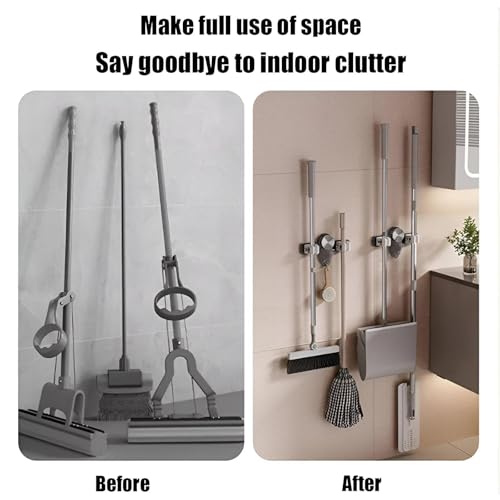 - متعدد الاستخدامات، يستوعب حامل المقشات هذا جميع أنواع المكانس سواء كانت خشبية أو معدنية أو بلاستيكية. يمكنك تعليقه دون عناء دون القلق بشأن سقوطه، مما يضمن أن أدوات التنظيف الخاصة بك في متناول اليد دائمًا.