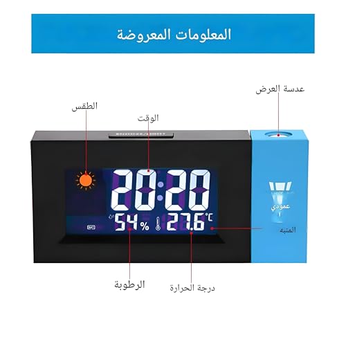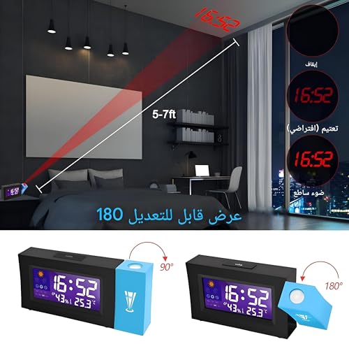 - يتميز هذا المنبه الرقمي بزاوية عرض 180° لعرض الوقت بوضوح تام على الجدران أو الأسقف من مسافة تتراوح بين 2 إلى 3 م، مما يتيح لك رؤية الوقت بسهولة أثناء الليل دون الحاجة إلى التقاط الموبايل أو التحقق منه.