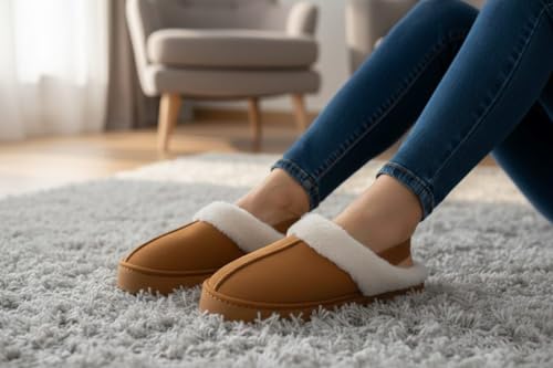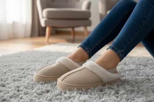 Generic - سليبر تصميم شتوي أنيق ومريح بلمسة فرو ناعمة من الداخل و طبقة قطيفة ناعمة من الخارج للنساء