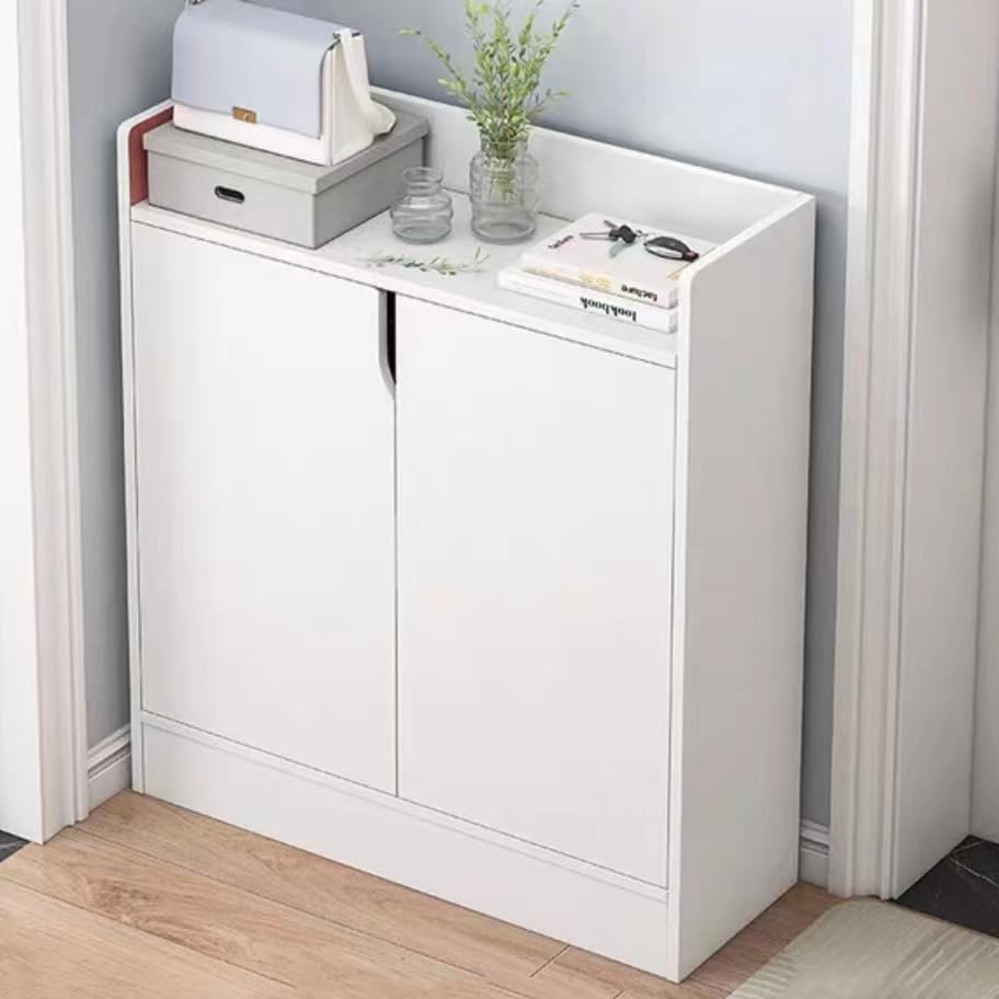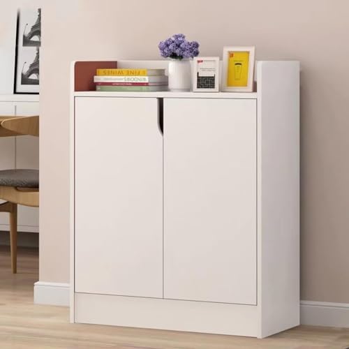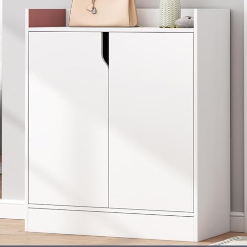 SLEEPHEAD - جزامة للمدخل من سليب هيد®: جزامة تنظيم أحذية من 6 طبقات، رف أحذية خشبي قائم بذاته مع أبواب وأرفف قابلة للتعديل للرواق والخزانة وغرفة المعيشة (أبيض، 60 × 25 × 80 سم)