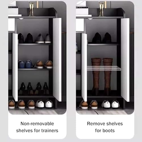 - متعددة الاستخدامات: يمكن أيضًا استخدام قطعة الأثاث متعددة الاستخدامات هذه كجزامة مدخل أو خزانة للمدخل، مما يوفر مساحة تخزين للأشياء الأخرى مثل المفاتيح أو الشماسي أو الأكسسوارات.